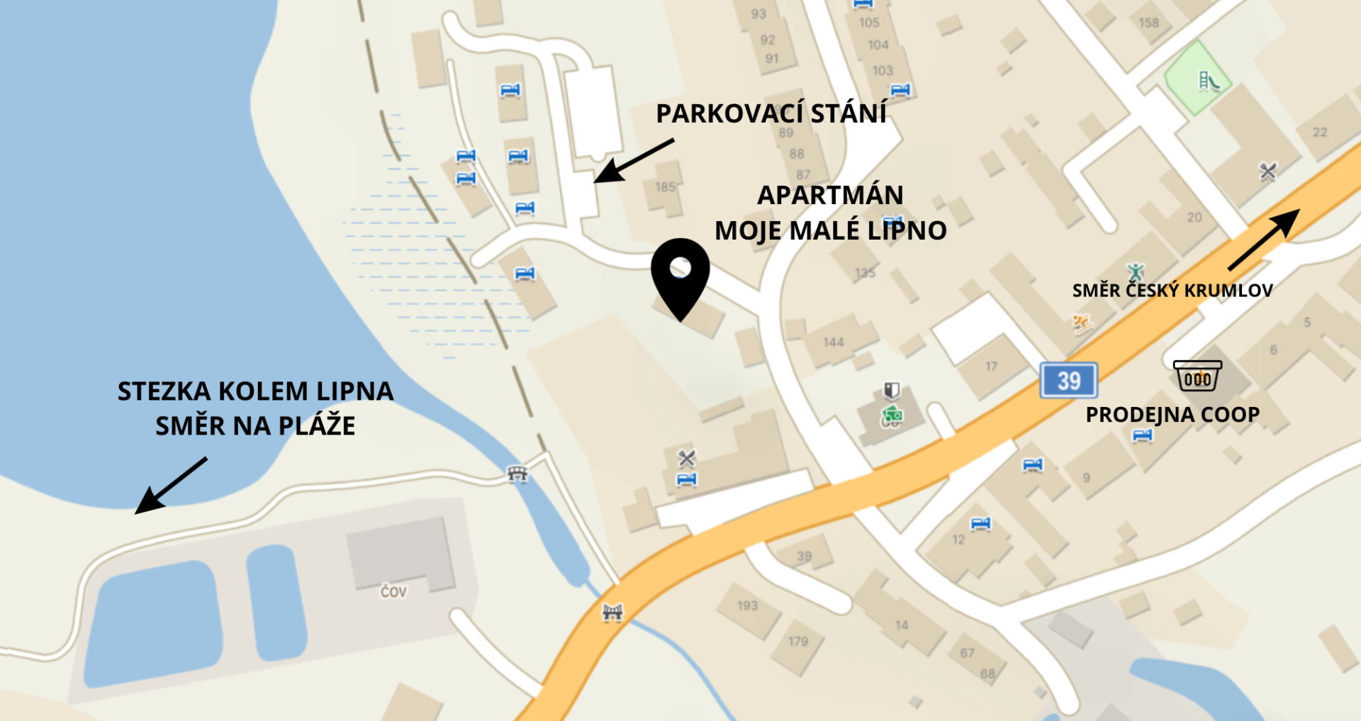 K apartmánu Moje Malé Lipno náleží soukromé parkovací stání a předzahrádka